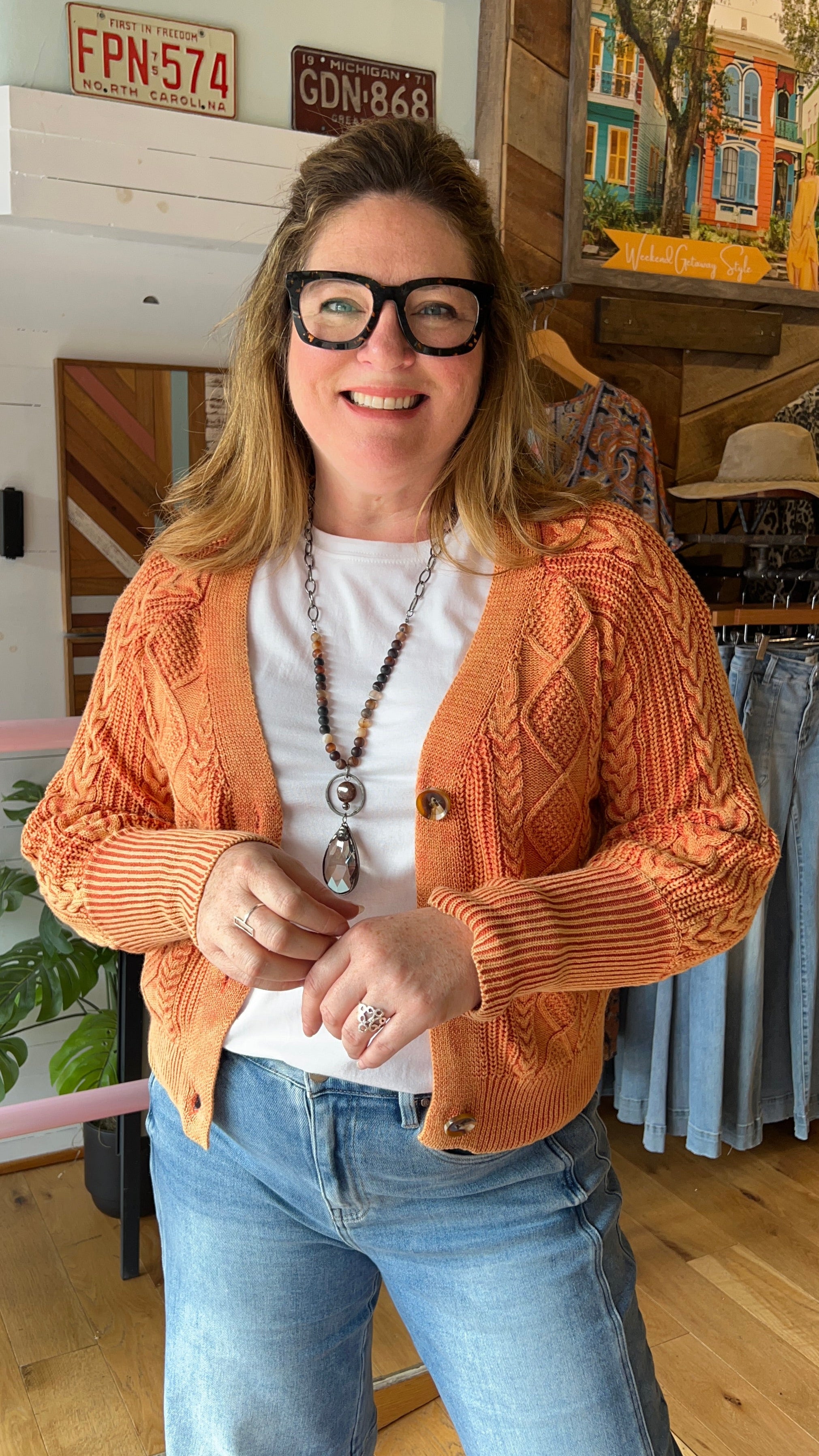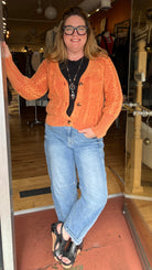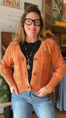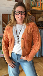 Copper Three Button Cable Weave Cardigan