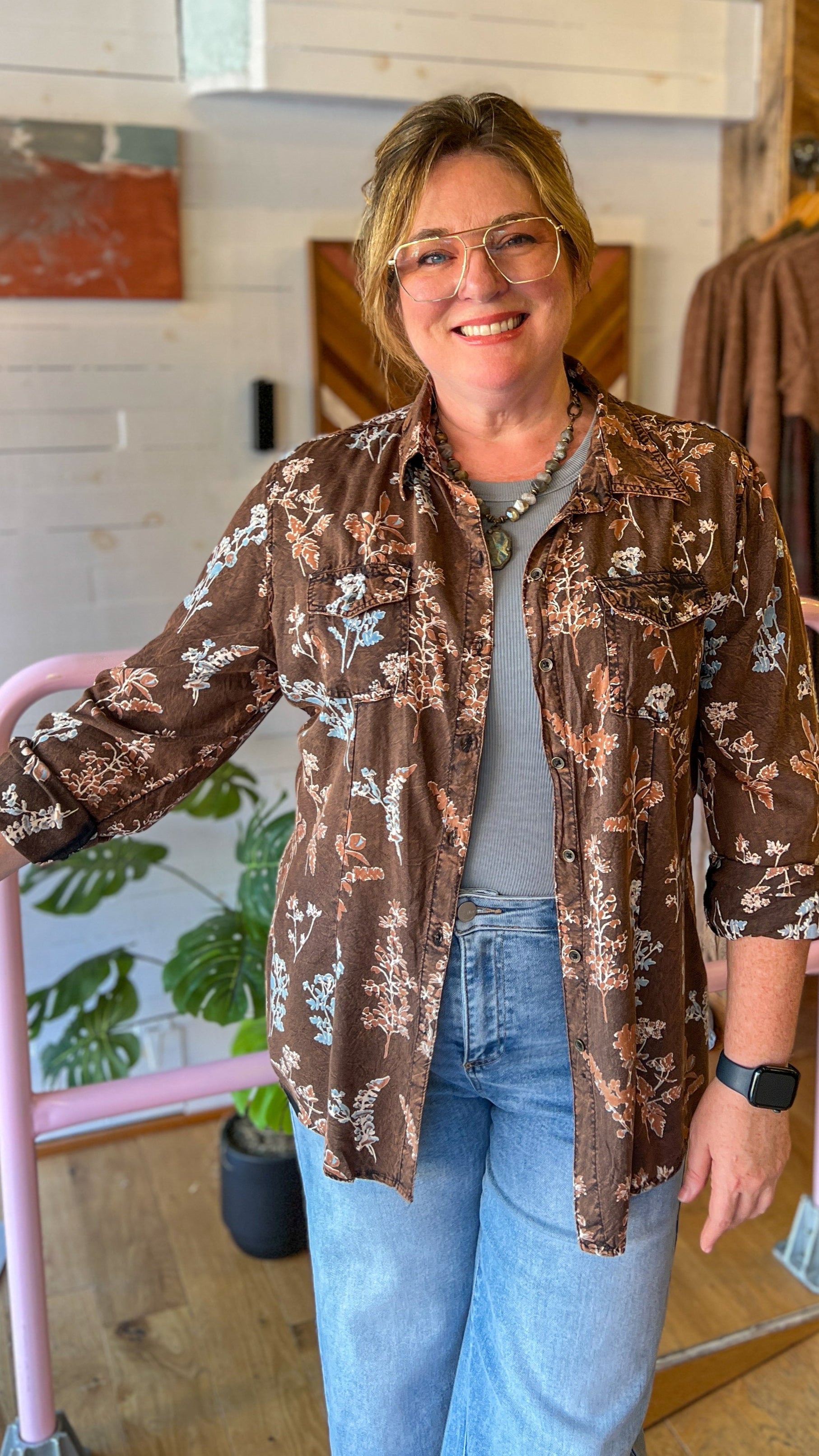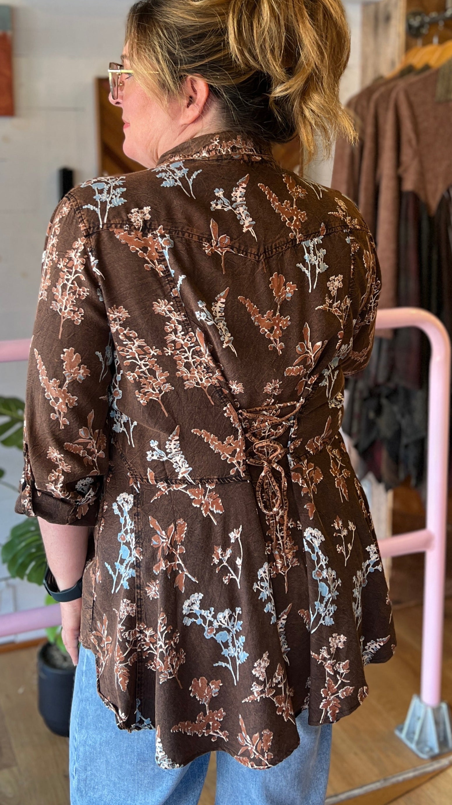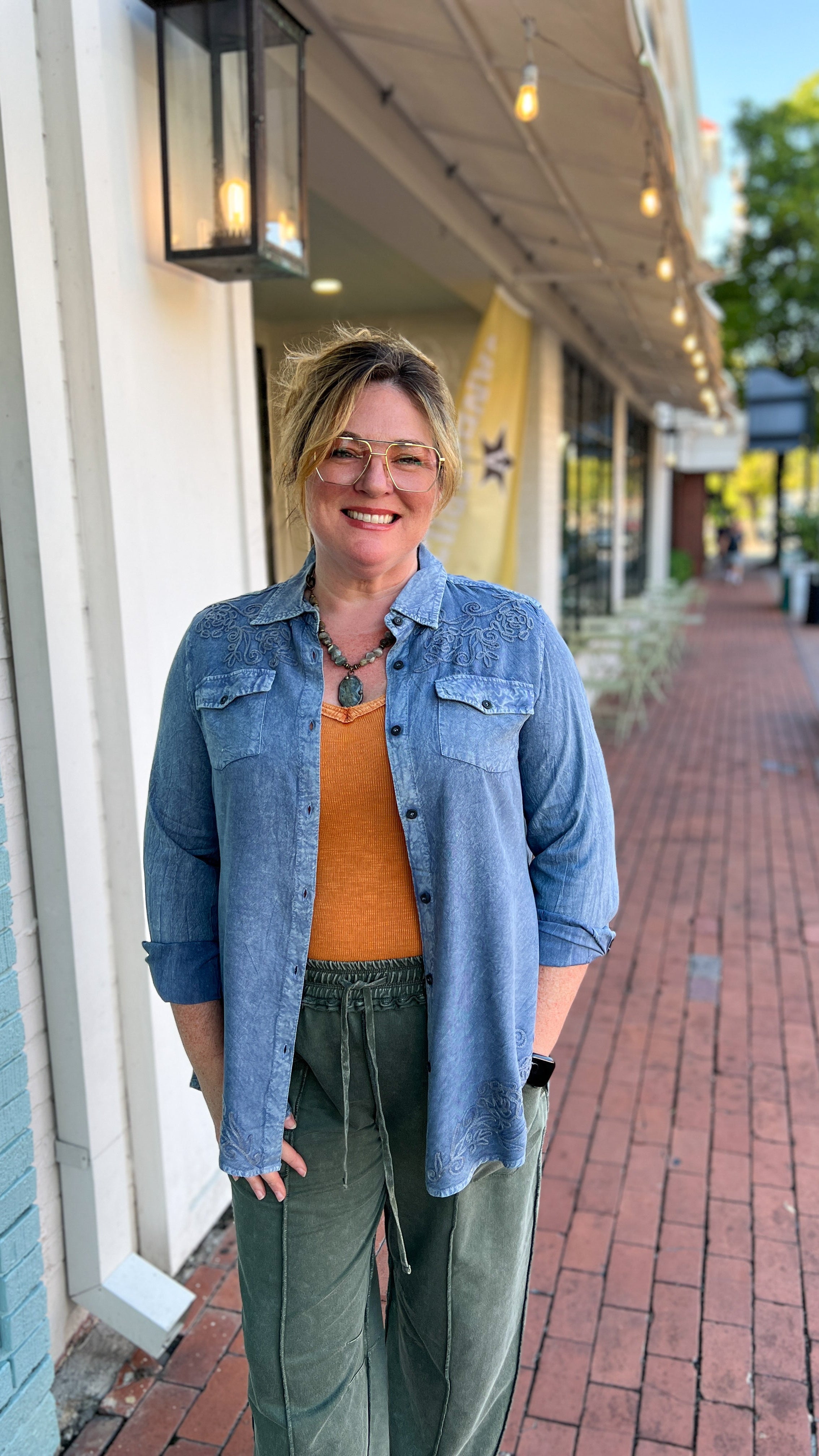 Fall Sunrise Embroidered Button Down Top by Aratta