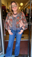 The Charcoal and Rose Floral Puff Sleeve Top is pure boho perfection — feminine, fun, and full of fall charm. Made from 100% cotton by POL, this top features a floral print in soft pink and rose tones against a rich charcoal background for that effortless mix of romance and edge.