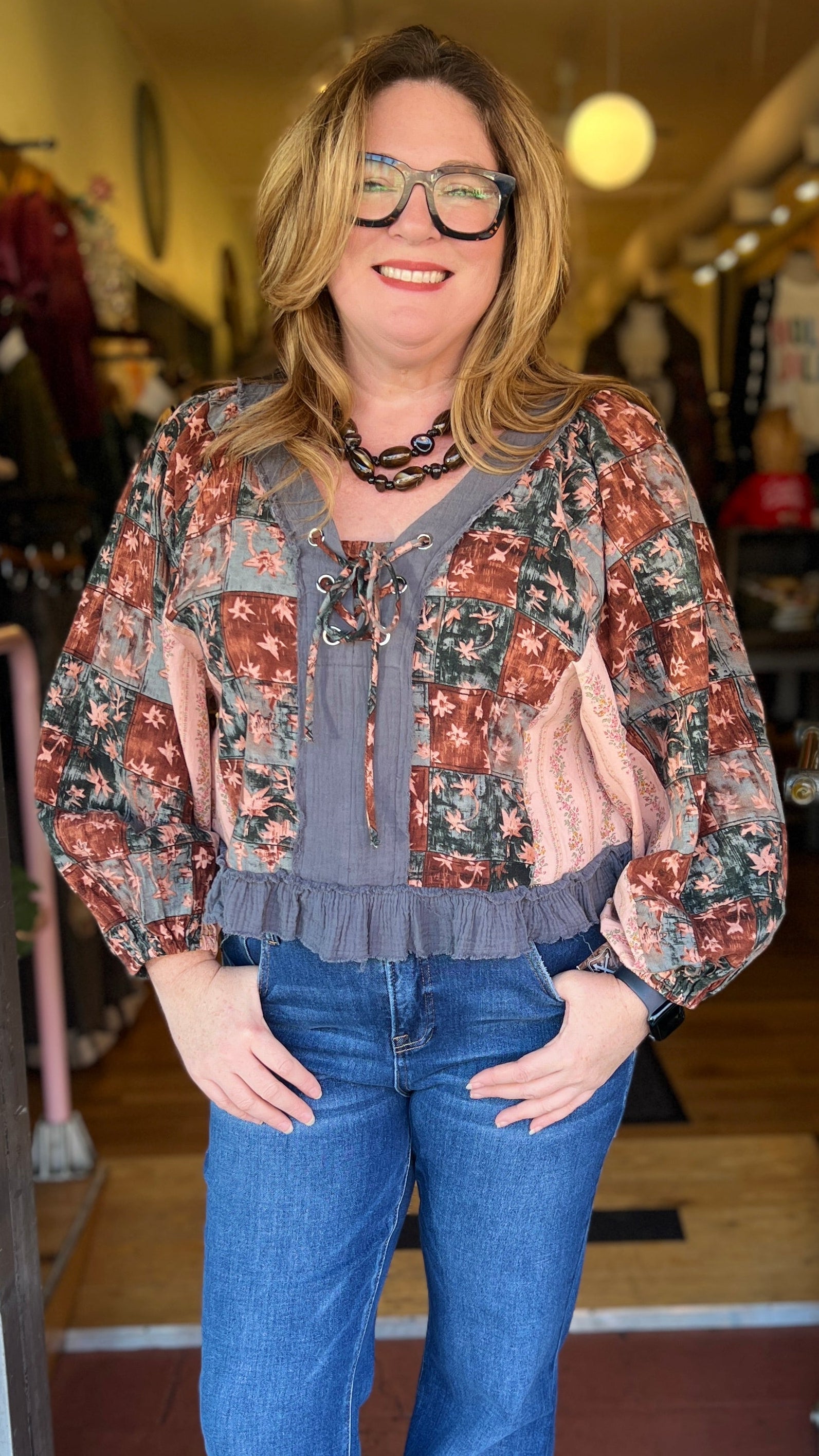 The dramatic puff sleeves and slightly cropped, oversized fit give it a playful silhouette that’s flattering and easy to wear. Pair it with high-waisted jeans, cords, or skirts for a look that’s equal parts vintage-inspired and modern boho. It’s already been a customer favorite in-store, and once you try it on, you’ll see why.