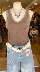 This tan sleeveless top is a wardrobe staple with just the right touch of shimmer. Made from soft, stretchy cotton, it features a sequin-trimmed neckline that adds a hint of sparkle while keeping the fit casual and comfortable. With its easy one-size design that works for S–XL, this versatile tank layers beautifully under sweaters, cardigans, or jackets. Pair it with our fall buttondowns, slip it under a cozy knit, or grab the merlot and rust versions to mix and match your favorite looks all season long.