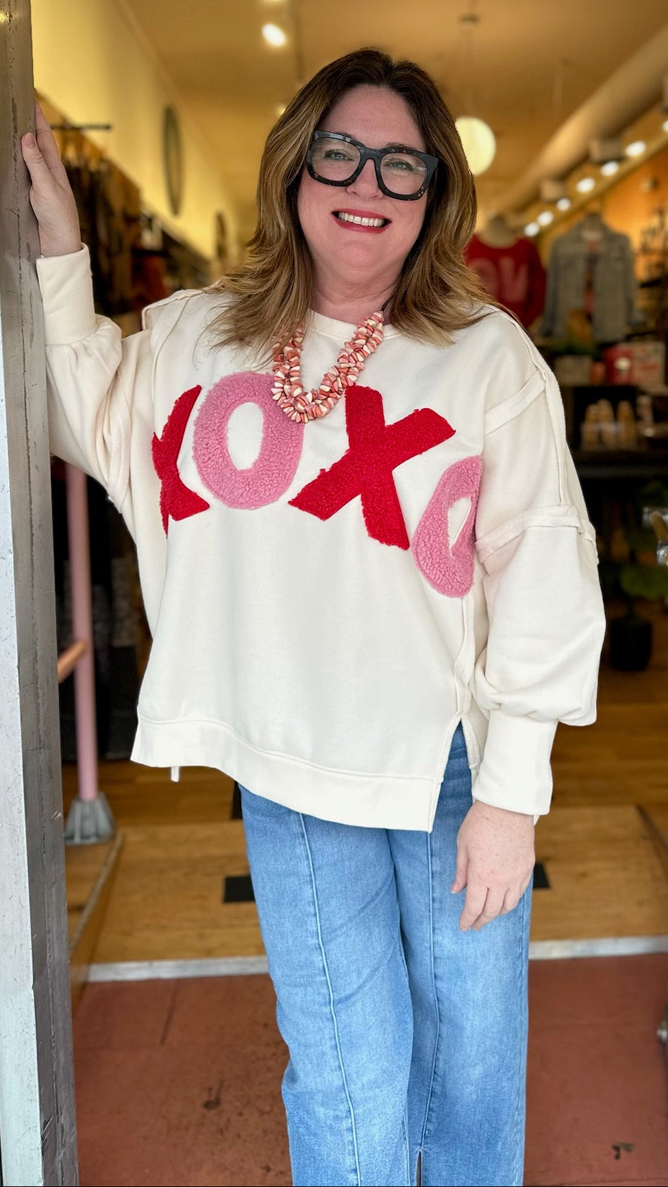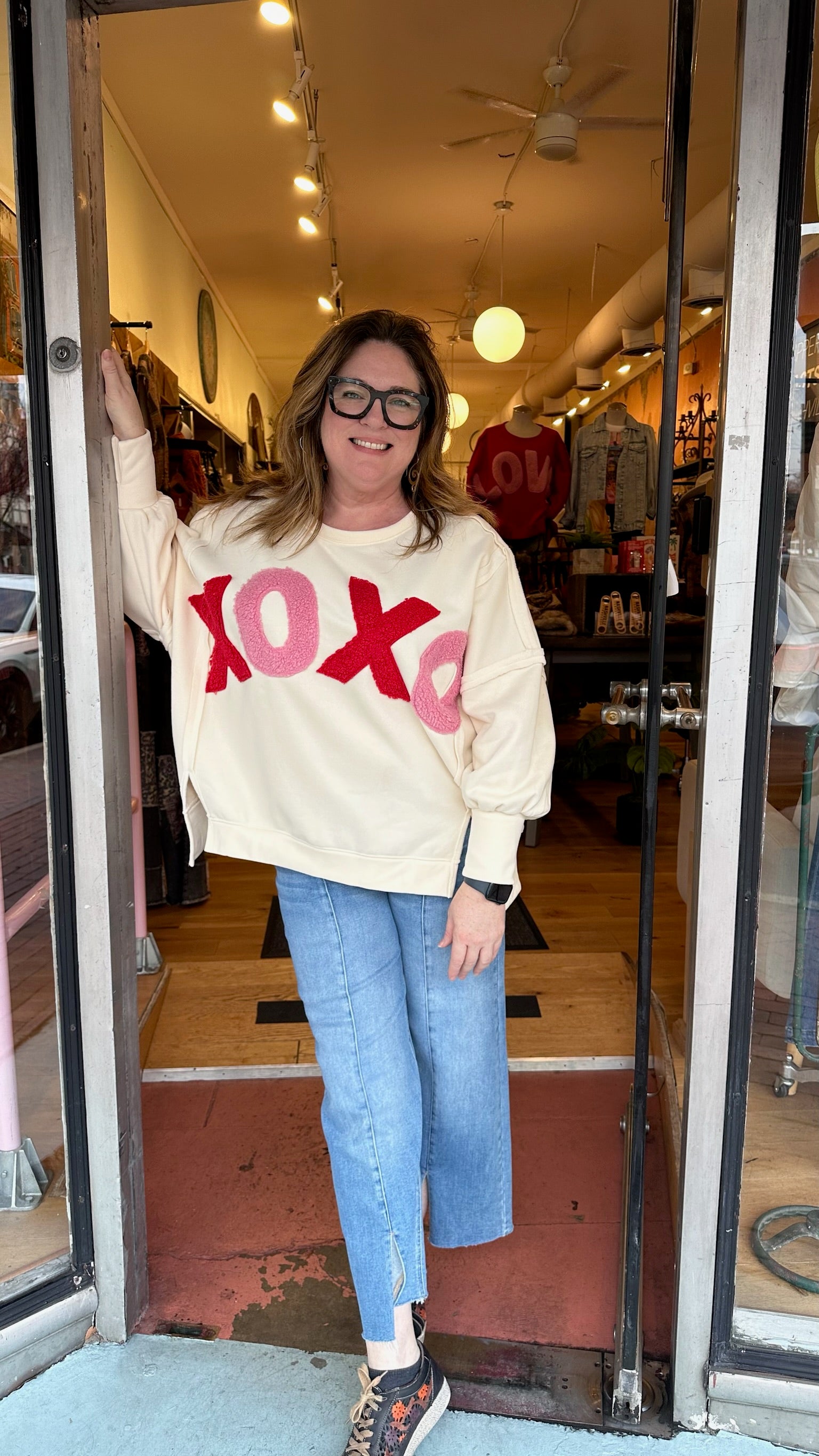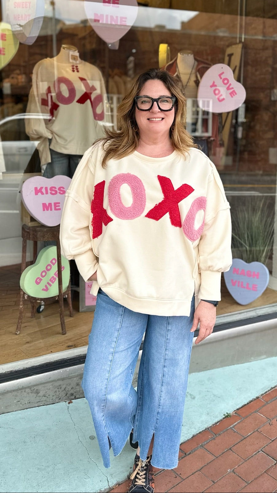XOXO Fleece Patchwork Sweatshirt