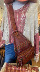 Cognac Italian Leather Studded Sling Bag