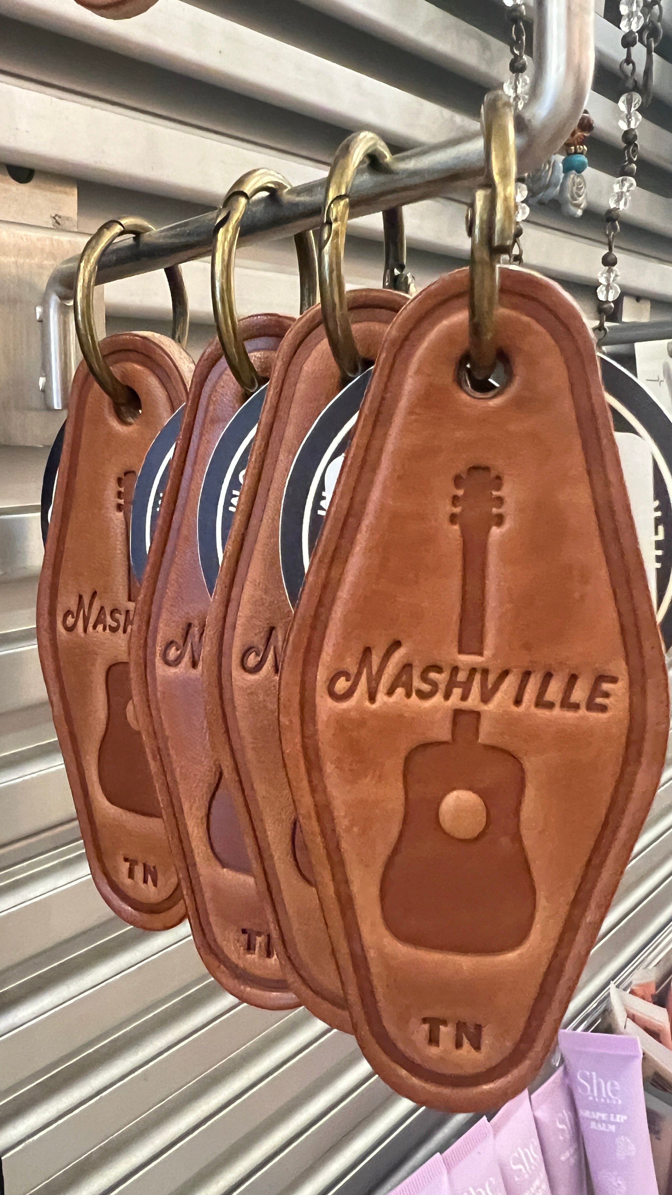 Take a little piece of Nashville home with you. These handcrafted leather key chains are made from durable full-grain leather with a sturdy brass key ring. Available in two styles—Nashville Script or Guitar with Nashville TN—they’re the perfect keepsake or gift for music lovers and travelers alike.
