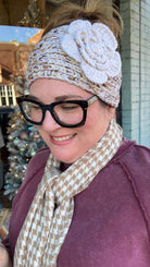 The matching light speckled cream knit headband/ear warmer features an adorable crocheted cream flower and a two-button closure for a secure, comfortable fit. Together, they create a charming, ready-to-wrap holiday gift that feels thoughtful and boutique-quality.