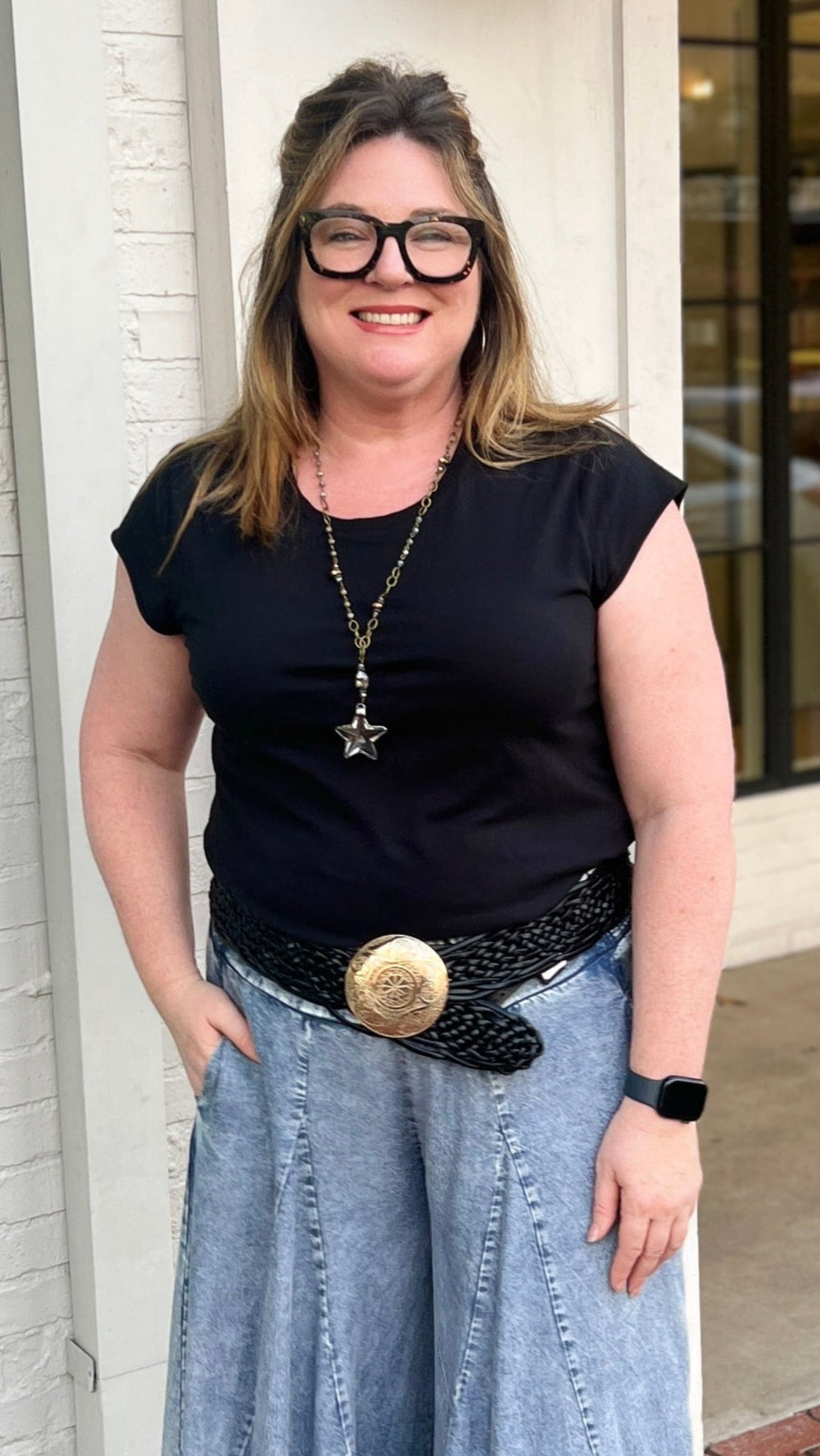 Our Black Soft Cotton Cap Sleeve Top is the perfect blend of comfort and versatility, designed to be your new favorite base layer for kimonos and beyond. Made from soft, breathable cotton, it features a flattering round neckline and feminine cap sleeves for an easy, polished look.