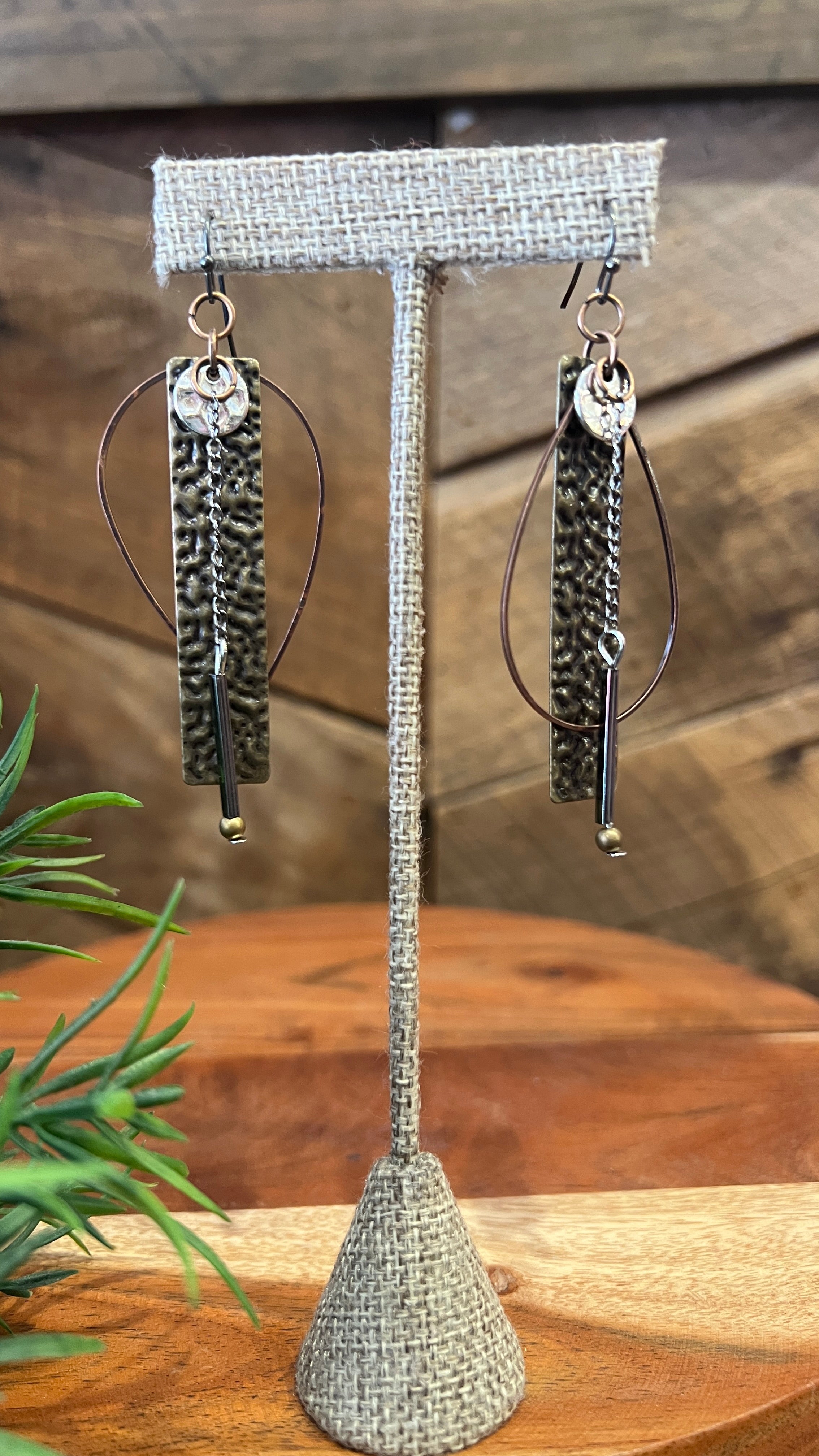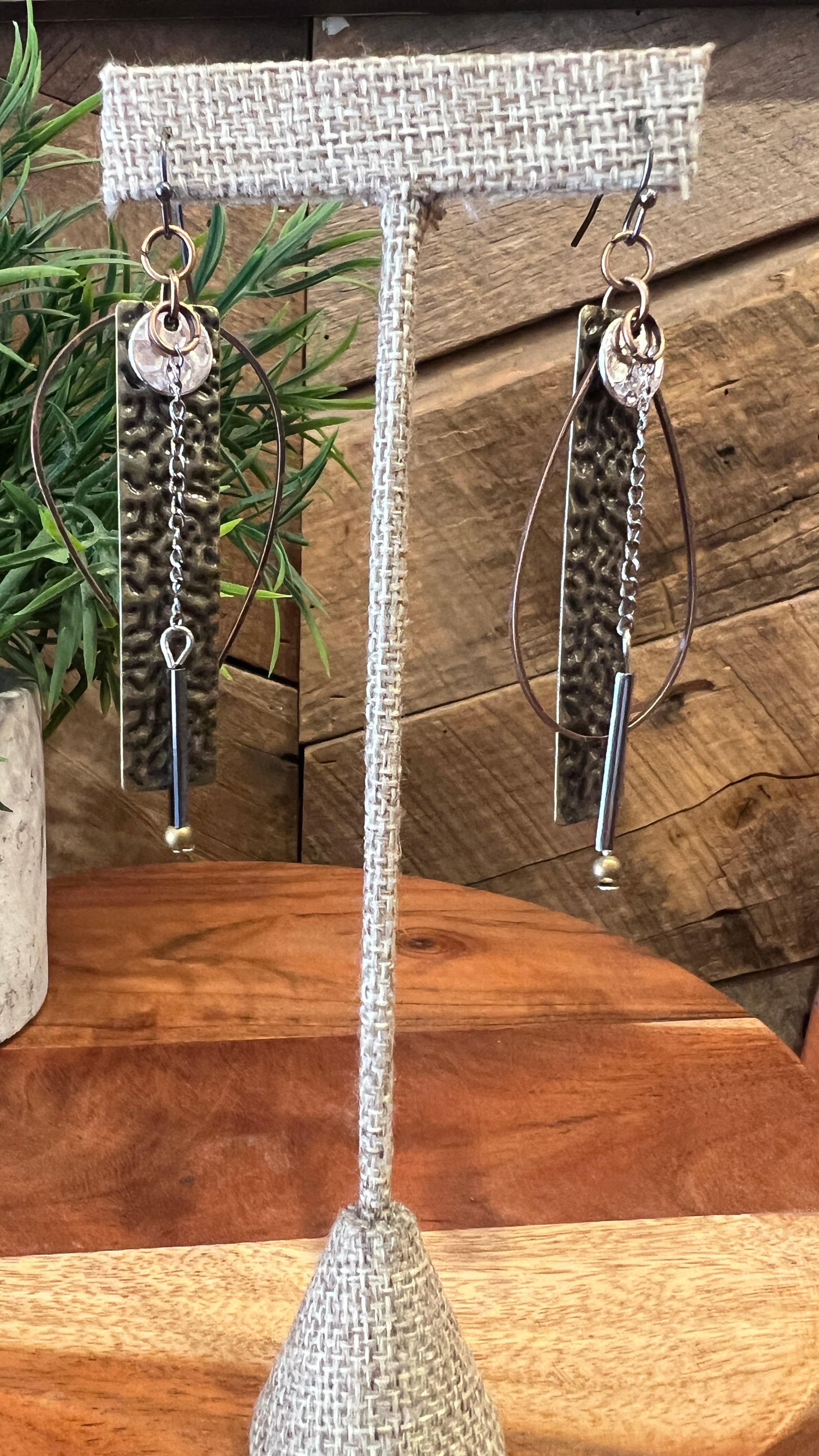 Boho Hammered Bar Drop Earrings