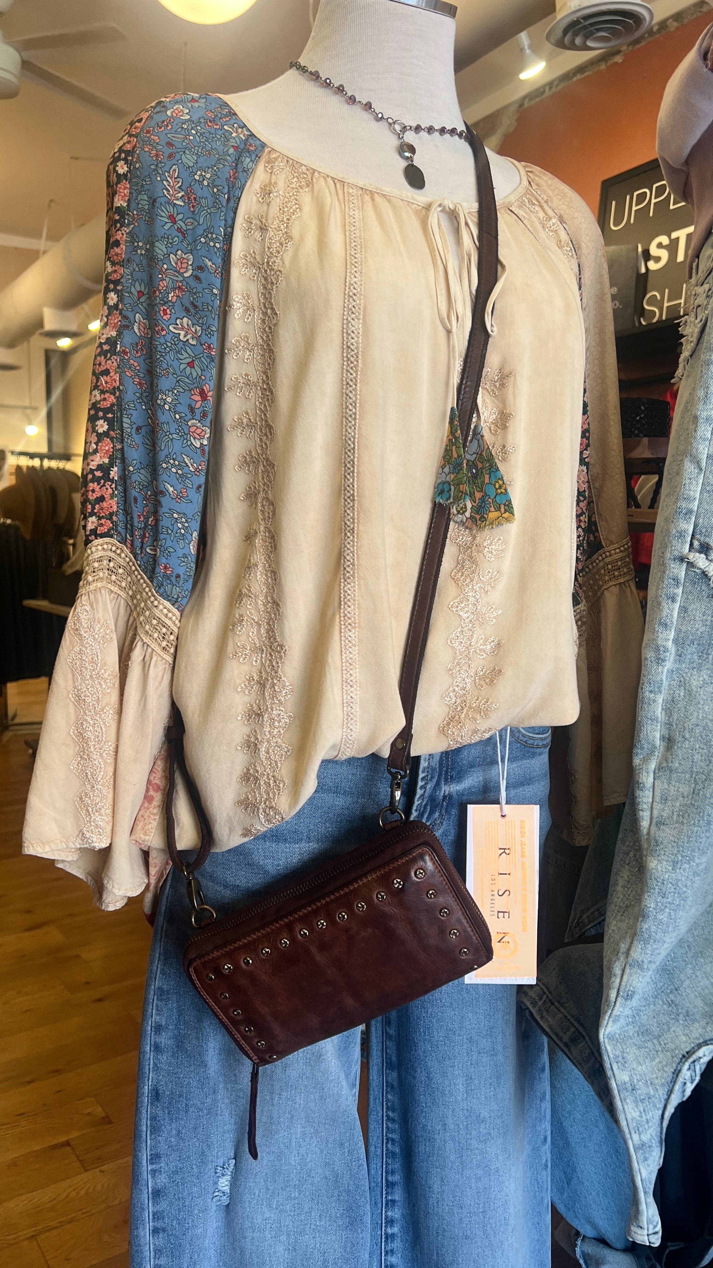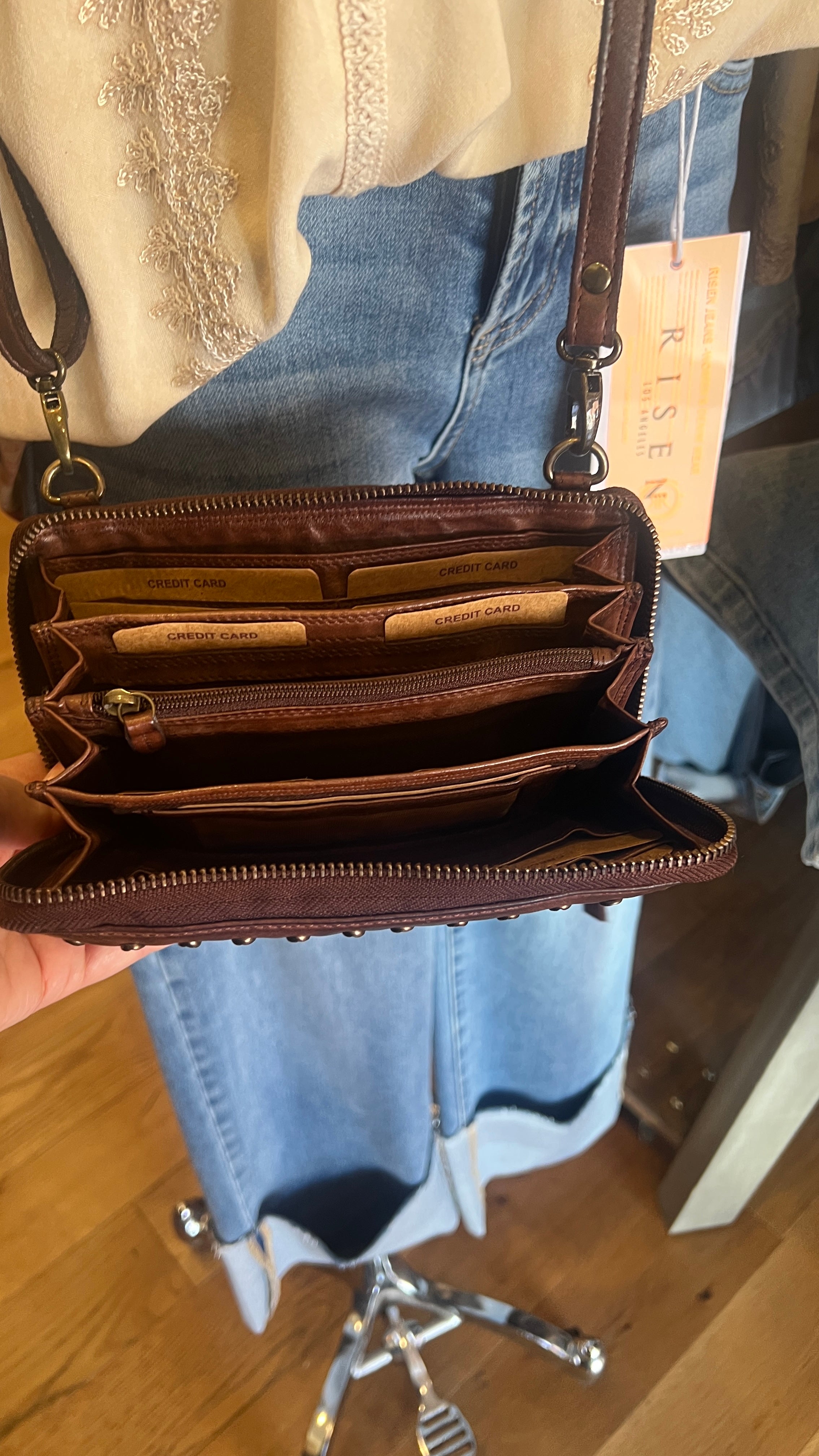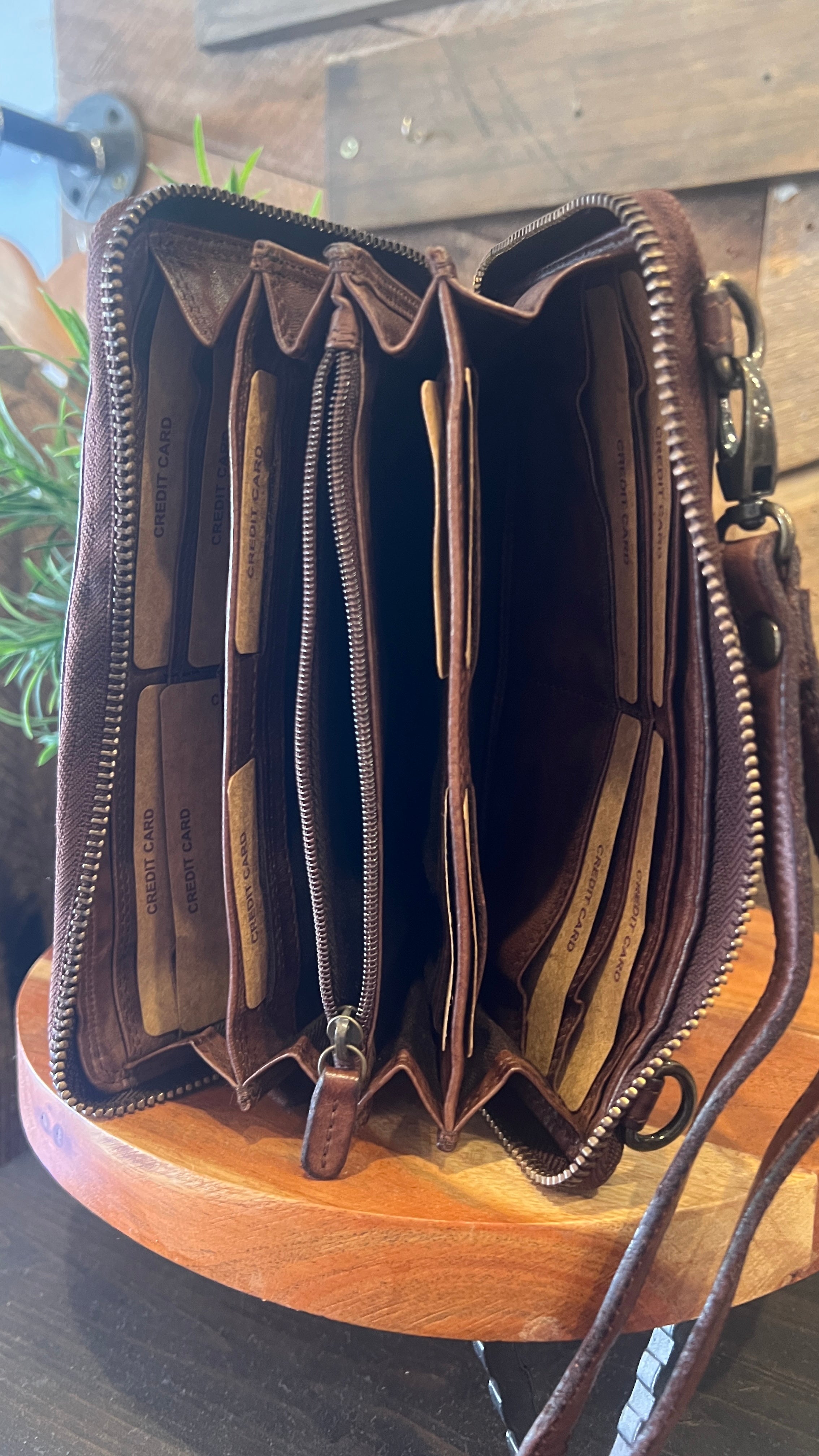 Perfect leather crossbody for ladies who want something minimal. Perfect wallet to throw into another purse. Put the wristlet strap on for a festival. Crossbody strap is completely adjustable.